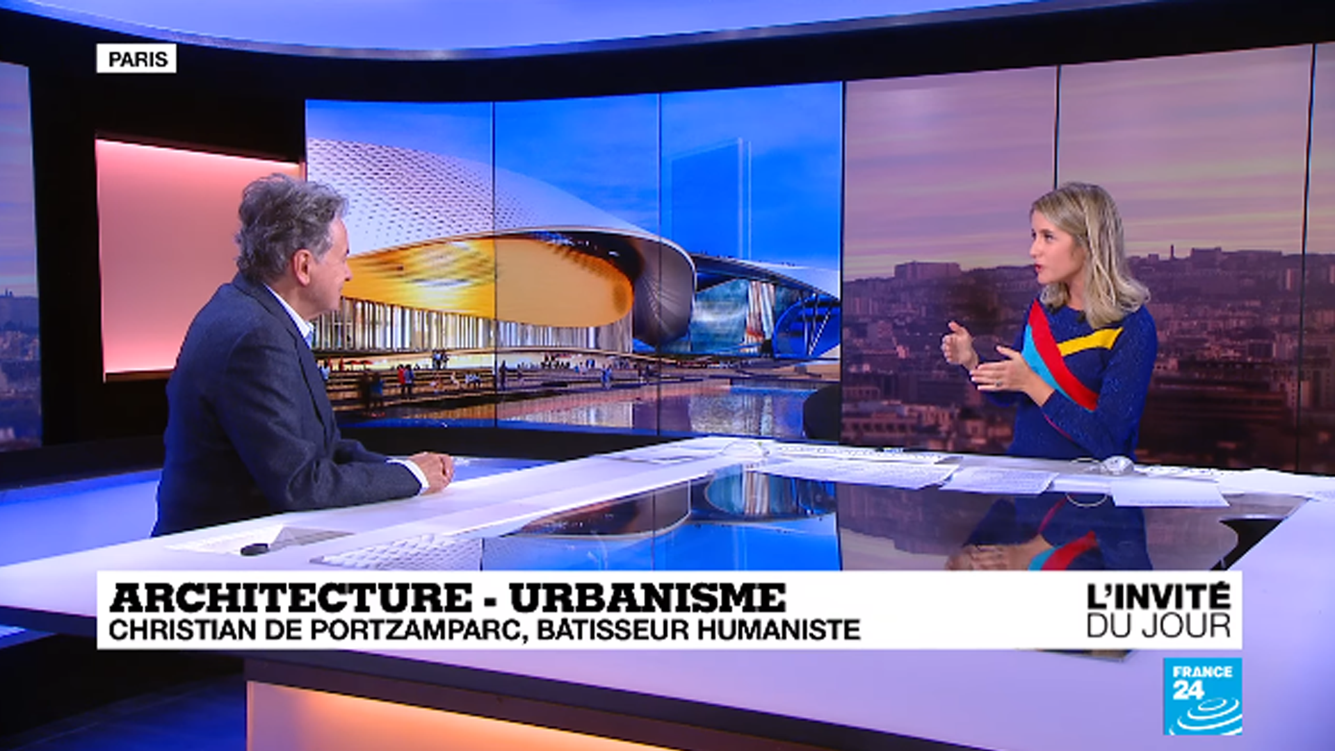Le Centre National Chinois des Congrès – Christian de Portzamparc au micro de Philippe Candeloro