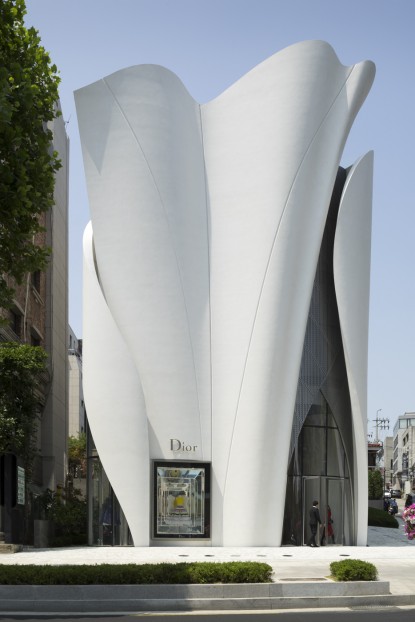 Christian de Portzamparc à créée la fierté de Séoul grâce à l’élégance et la rareté de ce bâtiment monumental. Une construction époustouflante qui rompt avec ce goût pour l’alignement basique des boutiques de luxe. Le bâtiment est enrobé de onze coques de 25 mètres de haut en résine sur fibre de verre comme sortant d’une grande boîte, un clin d’œil à la femme fleur et au tailleur « Bar ».